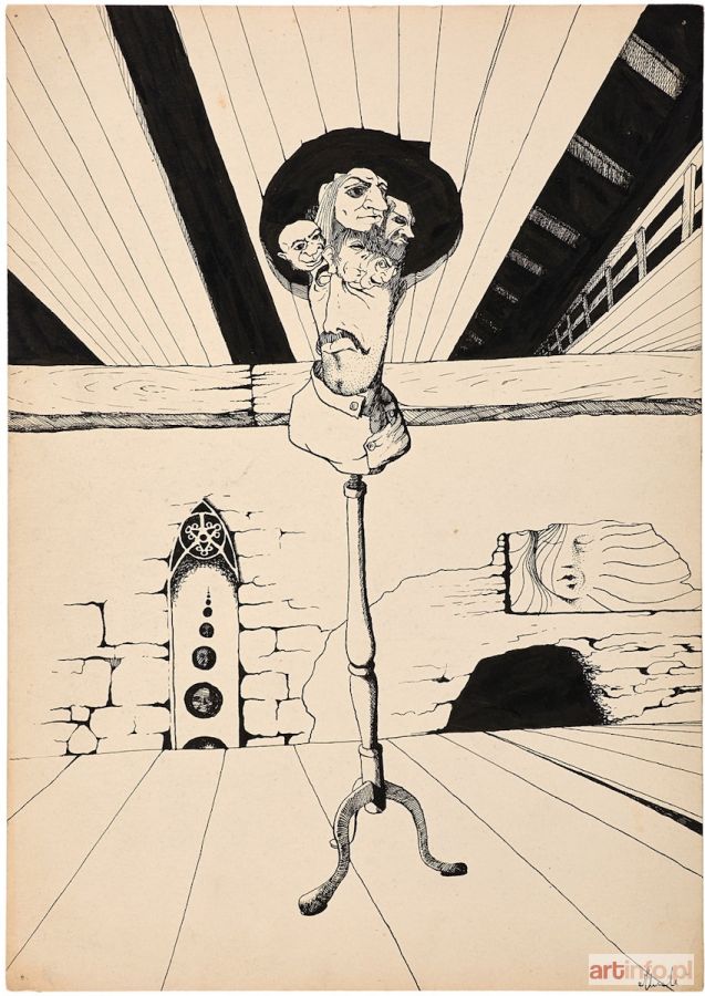 Tusz, papier; wym.: 32 x 23 cm, sygn. p. d.: PMarek.