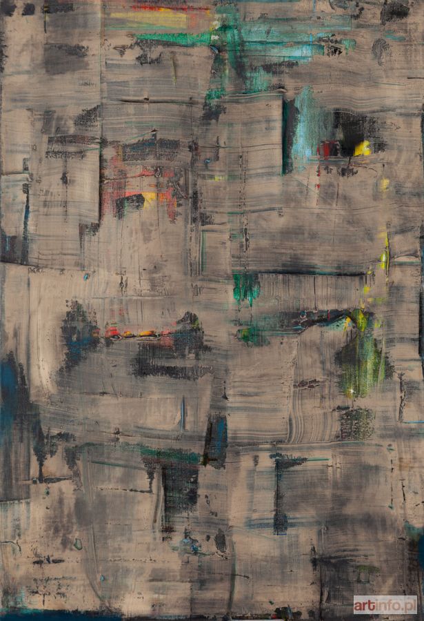 technika mieszana/płótno, 130 x 90 cm sygnowany, datowany i opisany na odwrociu: 'PIOTR WORONIEC JR_ | "CZEKAM NA GODOTA" | 2019'