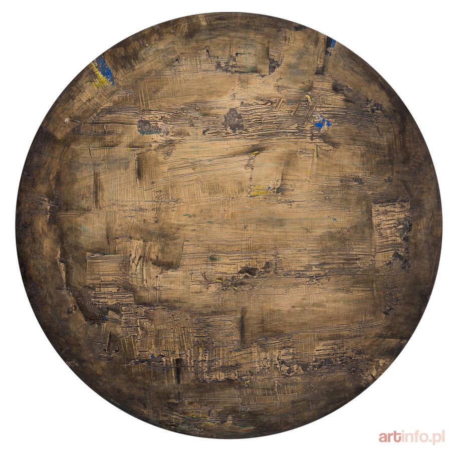 technika mieszana/płyta, śr.:115 cm sygnowany, datowany i opisany na odwrociu: 'Piotr Woroniec Jr | "Nasycenie" | 2018'
