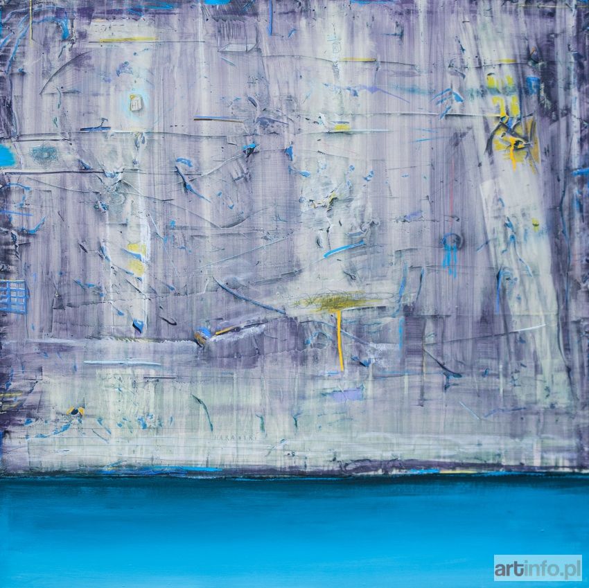 akryl, technika mieszana na płycie, 100x100 cm, opisany na odwrocie