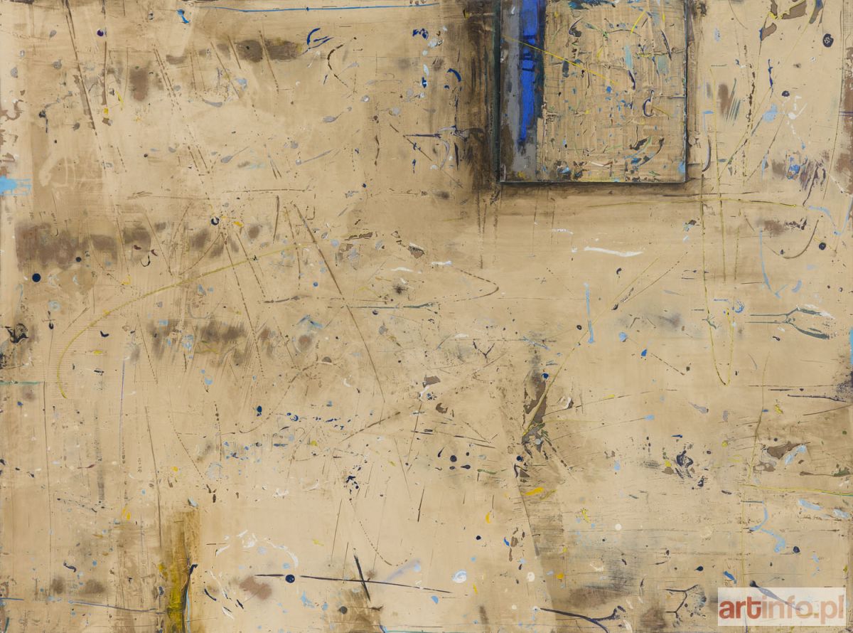 technika mieszana/płyta, 104 x 140 cm sygnowany, datowany i opisany na odwrociu: 'PIOTR WORONIEC JR_ | "SAND/SKJAR"_PIASKOWY EKRAN_ | z cyklu_ VOLTAGE_ | 2018_'