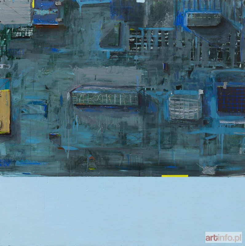 technika mieszana/deska 100 x 100 cm sygnowany, datowany i opisany na odwrociu: 'PIOTR WORONIEC JR | "TRAFO III" | 2016'