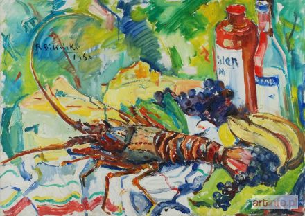 Martwa natura z homarem i butelkami [Aragosta con bottiglie], 1966
