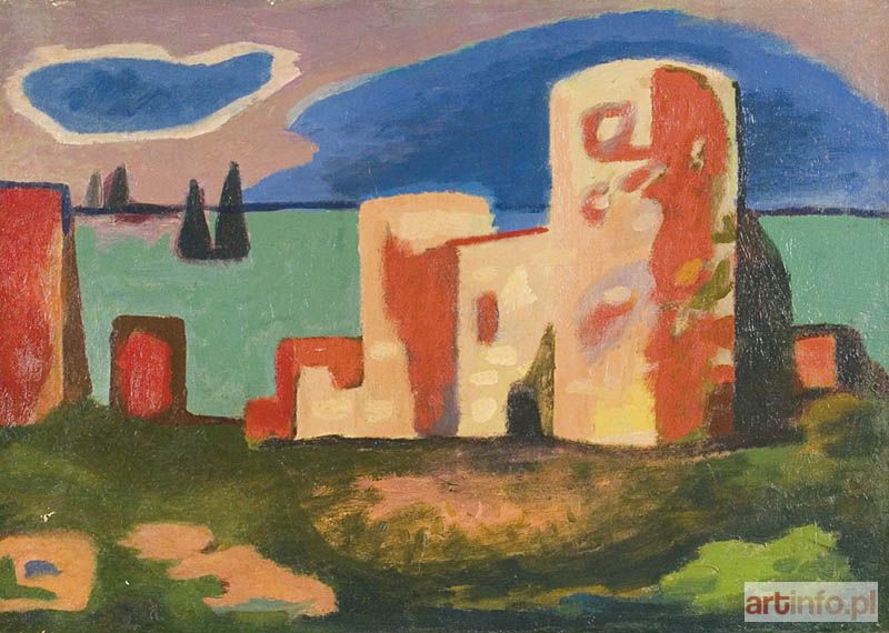 Olej, płótno; 46 x 65 cm Na odwrocie napis: B. K. R. C - 1624 | ĎŚŁŮŁÍ ¼. W(?) | Í/Ói? |"?Ó?ÚŚ?Ś"1960-tip. Ź/o 45 x 64 c.