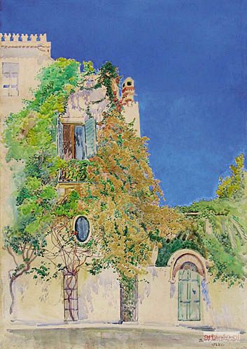 Akwarela, gwasz na papierze 97 x 67 cm (w świetle ramy) Sygnowany p.d. - "S. Masłowski / Taormina 1922"