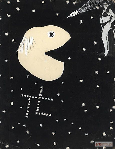 technika mieszana; wym.: 32 x 24,5 cm; sygn. na odwrocie, pieczęć i opis artysty. Stan zachowania: papier naklejony na tekturę, w dolnej części ślady załamań, na czarnym tle widoczne przetarcia.