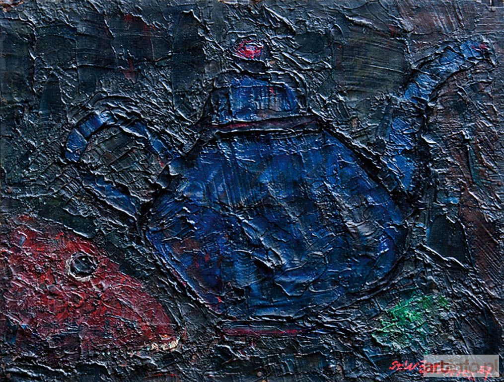 Olej, sklejka; wym.: 25 x 32,2 cm; sygn. p.d.: St. Wójtowicz 57. Na odwrocie: Kraków / St. Wójtowicz / "Martwa natura / z czajnikiem i / głową królika / olej / 1957.
