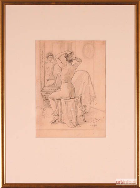 ołówek/papier, 33,5 x 24,5 cm sygnowany i datowany p. d.: `St. S. | 11.2.908` (na odwrocie szkic fragment portalu klasycystycznego)
