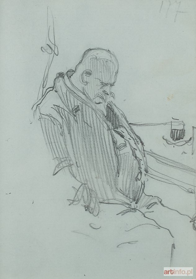 SAWICZEWSKI Stanisław | Mężczyzna śpiący za stołem w kawiarni