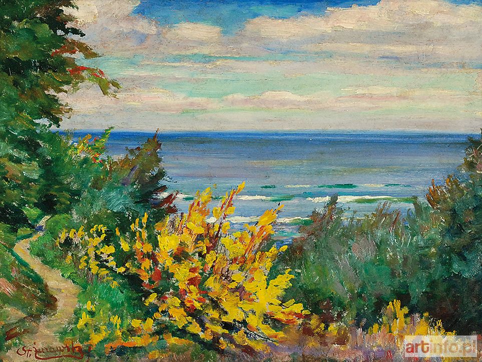 olej, tektura; 28,7 x 38,7 cm (w świetle oprawy); sygn. l. d.: St. Żurawski; na odwrocie napis: Stanisław Żurawski / Żarnowica / w Lisim Jarze / ol (30 x 40).