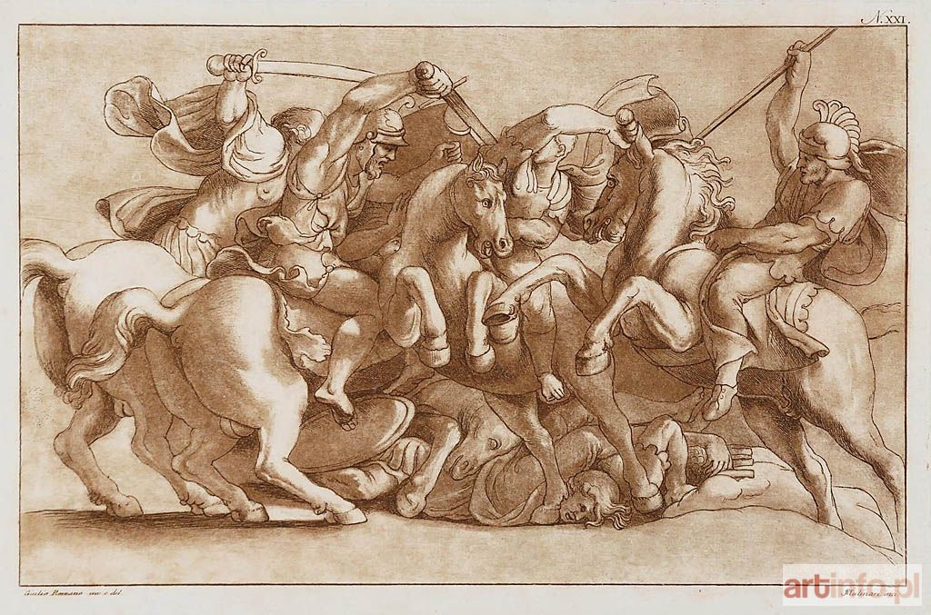 wg Giulio ROMANO (ok. 1499-1546) miedzioryt, tinta sangwina, papier żeberkowy, ok. 28 x 40,6 cm (odcisk płyty), 30 x 41,8 cm (wymiar arkusza); sygn. p. d.: Mulinari inci: (na płycie); napis l. d.: Giulio Romano inv: e del: (na płycie); p. g.: N.XXI. (na płycie)