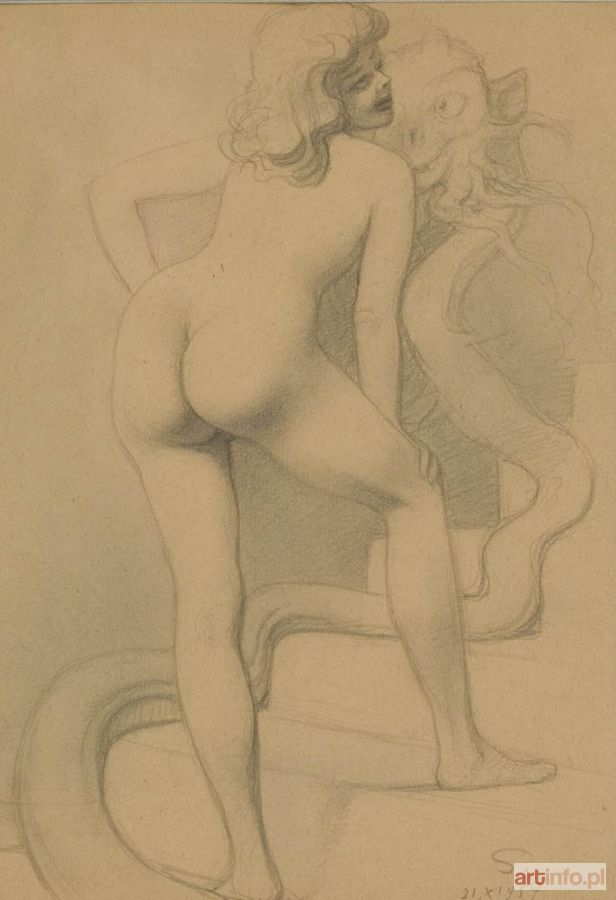 Stefan ŻECHOWSKI (1912-1984) Od 1928 r. studiował w krakowskiej Państwowej Szkole Sztuk Zdobniczych i Przemysłu Artystycznego. W tym samym roku został przyjęty do "Szczepu Rogate Serce" S. Szukalskiego. W latach 1930-1936 uczestniczył we wszystkich wystawach ugrupowania. W 1937 r. Żechowski rozpoczął prace nad cyklem 37 ilustracji do powstających "Motorów" E. Zegadłowicza. Ilustrował także dzieła A. Mickiewicza, J. Kasprowicza, B. Leśmiana, J. Żuławskiego.