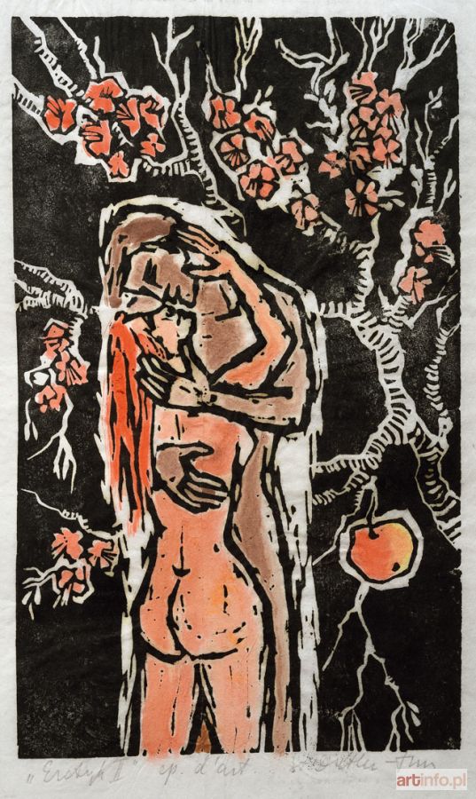 drzeworyt barwny na bibułce, 23,5 x 14,5 cm na arkuszu 35,5 x 24 cm, sygnowany ołówkiem u dołu: "Erotyk II", pośrodku "ep. d’art.", po prawej "St. Dretler-Flin".