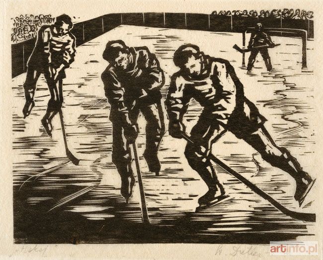 drzeworyt na bibułce, 16 x 20 cm na arkuszu 23 x 25,5 cm, sygnowany p.d. "St. Dretler-Flin", l.d. "Hokej".