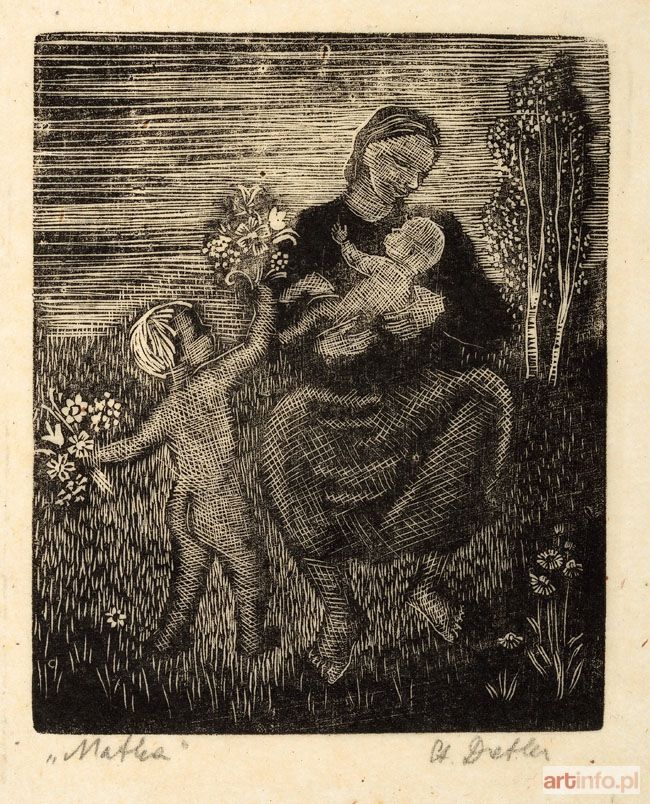 drzeworyt na bibułce, 12 x 10 cm na arkuszu 16 x 16 cm, sygnowany p.d. "St. Dretler". l.d. "Matka".