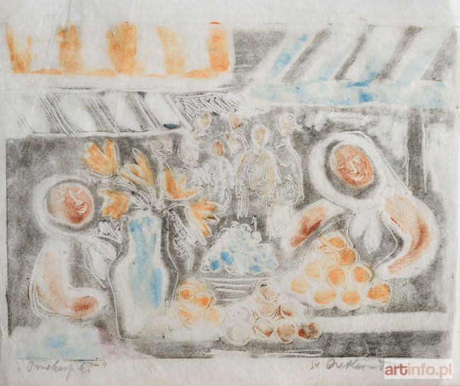 Stefania DRETLER-FLIN (1909 Kraków - 1994 Kraków) Specjalizowała się w grafice (linorycie i drzeworycie) oraz po roku 1960 w ceramice i rzeźbie figuralnej. Autorka znakomitych monotypii z lat 50-tych. Po studiach artystycznych w Krakowie kształciła się w paryskiej Académie Colarossi. Debiutowała w roku 1930. Była członkiem Grupy Dziewięciu Grafików (1947-1960), do której należeli m.in. Leon Kosmulski, Bogna Krasnodębska-Gardowska, Mieczysław Wejman - twórca "krakowskiej szkoły graficznej", Krystyna Wróblewska - prezes grupy (matka Andrzeja Wróblewskiego).