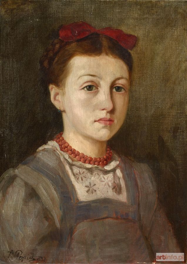 olej na płótnie, 55 x 40 cm, sygnowany i datowany l.d. "T. Popiel 1897". Na odwrocie, na krośnie ołówkiem: "Kociewska [?] Wanda 1897". W ramie z lat międzywojennych.