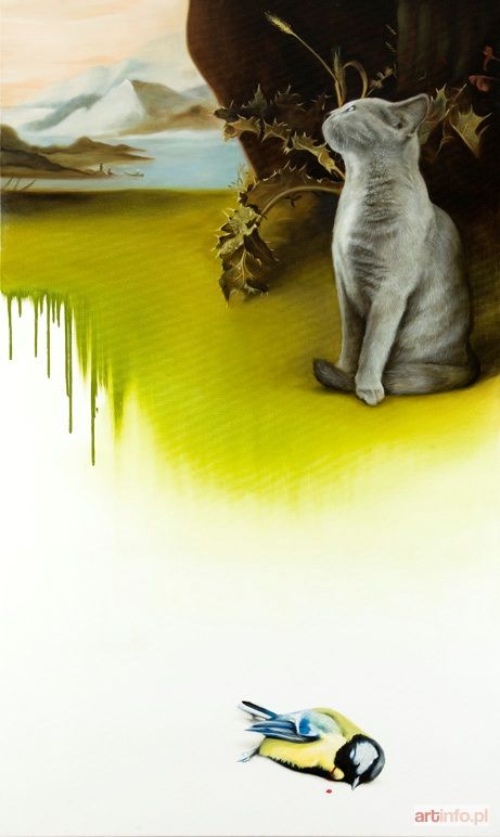 olej/płótno, 150 x 90 cm na odwrociu opisany: `TOMASZ POZNYSZ | "Po polowaniu / okrucieństwa" | "After the hunt / atrocity", 2014`