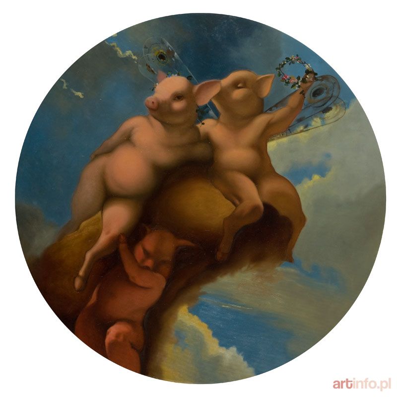 olej/płótno, śr.: 100 cm sygnowany, datowany i opisany na odwrociu: `TOMASZ POZNYSZ | "TRIUMF ZEFIRA I | FLORY", 2015`