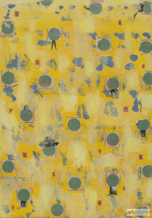 tempera, akryl, kolaż, płótno, 100x70 cm