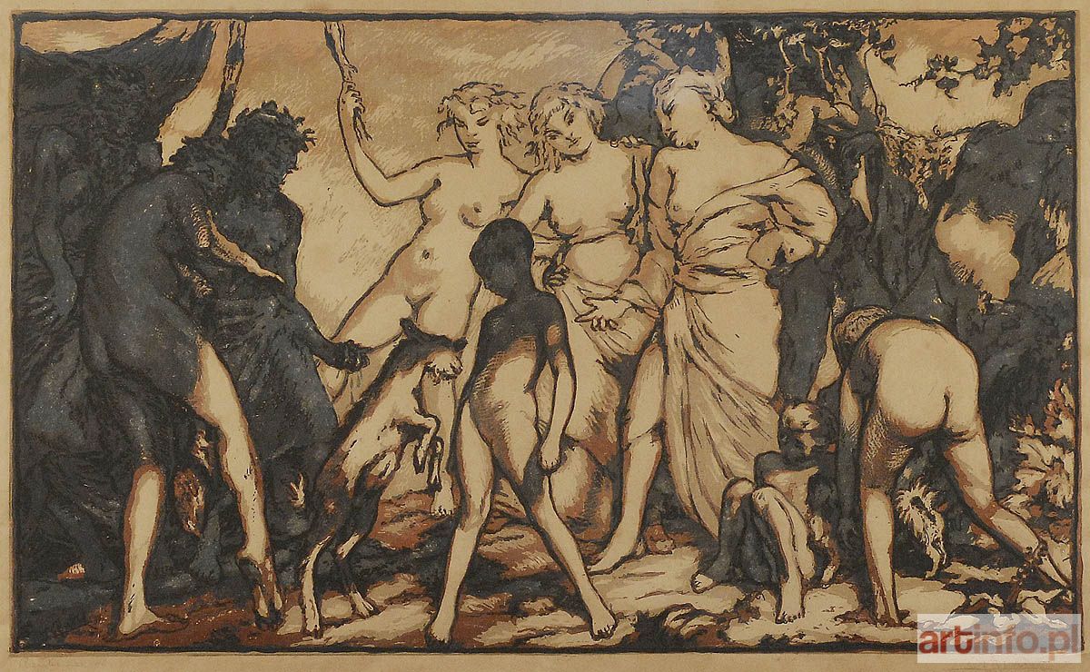 drzeworyt barwny, 36,5 x 49,5 cm sygn. oł. p.d.: Vl Pukl; oł. l.d.: Bacchanal 6; na klocku l.d.: Vl. Pukl 37