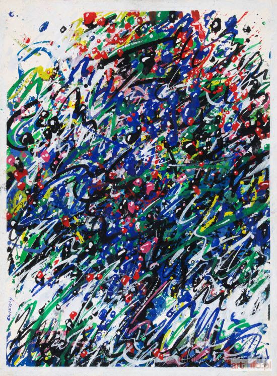 Gwasz, tektura; wym.: 46,5 x 35 cm; sygn. l.d.: ŚWIERZY. Kompozycja wykorzystana w plakacie reklamowym Krajowej Agencji Wydawniczej. Na odwrocie uszkodzone naklejki wydawnicze oraz oznakowania typograficzne.