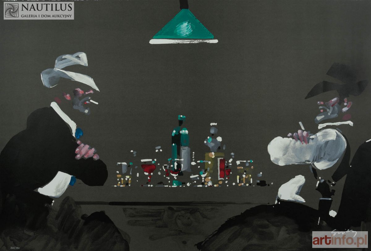 Litografia barwna; wym.: 765 x 1150 mm; sygn.: Świerzy; egz. 323/350. Praca z serii "Gangsterzy". Na odwrocie wzmocnienie taśmą przezroczystą.
