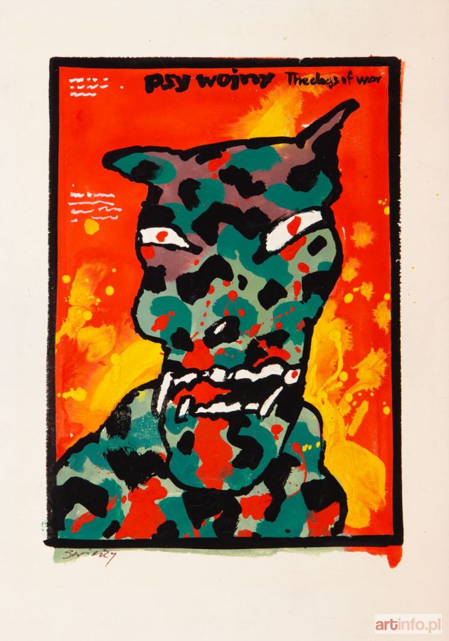 gwasz/papier, 29,5 x 21 cm (arkusz) sygnowany l.d.: 'Swierzy' oraz opisany wewnątrz kompozycji l.g.: 'PSY WOJNY the dogs of war'