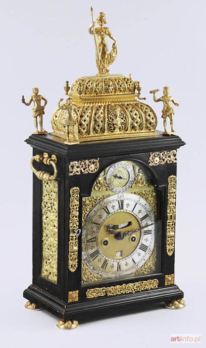drewno, brąz złocony, mosiądz grawerowany, złocony i srebrzony; szkło; wys. 60 cm, szer. 27 cm, głęb. 17 cm; Anglia, Londyn, 2 poł. XVII w.