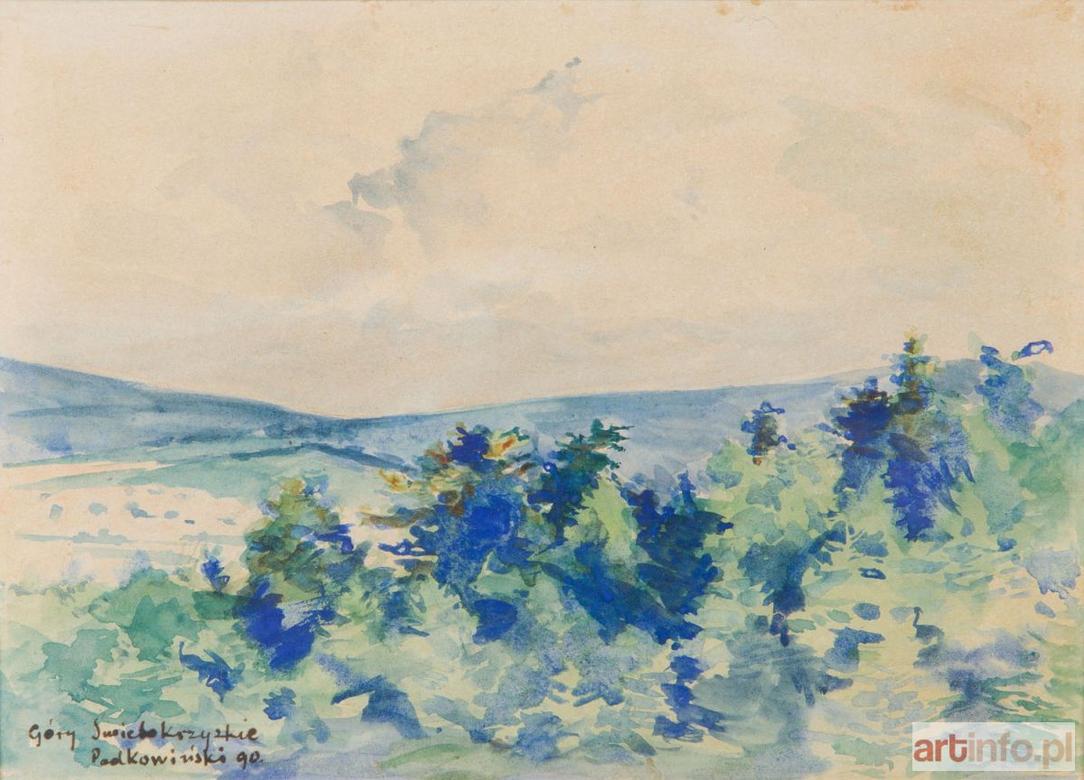 akwarela/papier, 18,5 x 26 cm (w świetle passe-partout) sygnowany, datowany i opisany l.d.: 'Góry Świętokrzyskie | Podkowiński 90.'
