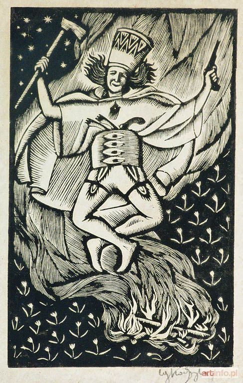 Drzeworyt; 21,8 x 13,7 cm (odcisk klocka) Sygnowany ołówkiem p.d.: Wł. Skoczylas