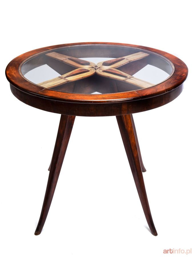 Władysław Wołkowski edukację plastyczną rozpoczął w 1920 roku w prowadzonej przez Jana Kostrzyc-Witkiewicza Szkole Rzemiosł Budowlanych w Kazimierzu nad Wisłą. Po trzech latach nauki skierowany został przez Witkiewicza na kurs instruktorów Towarzystwa Przemysłu Ludowego w Warszawie, gdzie poznał swojego przyszłego mistrza – Wojciecha Jastrzębowskiego. Dzięki tej znajomości zyskał możliwość włączenia się w przygotowania polskiej ekspozycji na Wystawę Światową w Paryżu w 1925 roku. Podjął także decyzję o rozpoczęciu nauki w warszawskiej Szkole Sztuk Pięknych, której Jastrzębowski był wykładowcą. Ze względu na trudności finansowe, studia rozpoczęte w połowie lat dwudziestych ukończył dopiero w 1935 roku. W trakcie przerwy w edukacji sam nauczał w ośrodkach wikliniarskich doskonaląc przy tym swój rzemieślniczy warsztat. Wiklina stała się jego głównym medium. Z obszaru ludowego plecionkarstwa wyniósł ją na pole sztuk stosowanych. Jeszcze przed wojną wyplatane z wikliny meble projektu Wołkowskiego zyskiwały coraz większe uznanie i zainteresowanie nie tylko w Polsce, ale i za granicą. W końcu lat 30. XX wieku prezentowane były na wystawach w Berlinie, Paryżu i Nowym Jorku. W 1937 roku na paryskiej wystawie „Sztuka i technika w życiu współczesnym” prace Wołkowskiego odznaczone zostały złotym medalem. Meble jego autorstwa zdobiły wnętrza rezydencji rządowych, m.in. ambasady w Berlinie. W końcu lat 50. XX wieku Wołkowski zrealizował wielkie zlecenia na dwory królewskie w Belgii i Wielkiej Brytanii. Do najsłynniejszych jego realizacji na terenie Polski należało wyposażenie Hotelu Merkury w Poznaniu. Prezentowany stół zaprojektowany został przez Wołkowskiego w pierwszej połowie lat 50. XX wieku. Projekt znalazł miejsce we wnętrzach kawiarni „Morskiej” w Gdańsku. W komplecie z wiklinowymi krzesłami stanowił główny element plastyczny wnętrza. Stół, co charakterystyczne dla wczesnych projektów Wołkowskiego oparty jest na drewnianej konstrukcji, a elementy plecione są jej podporządkowane. Dzięki zastosowaniu szklanego blatu są one widoczne, co daje niezwykle dekoracyjny efekt. Poza produkowanymi seryjnie stołkami o konstrukcji z giętego pręta stalowego i wyplocie ze sznurka, obiekty projektu Władysława Wołkowskiego niezwykle rzadko pojawiają się na rynku. Spuścizna projektowa artysty znajduje się w muzeum jego imienia w Olkuszu. Na tamtejszej stałej ekspozycji prezentowany jest analogiczny stół z zestawem czterech krzeseł opisany jako „Komplet kwiatowy”.