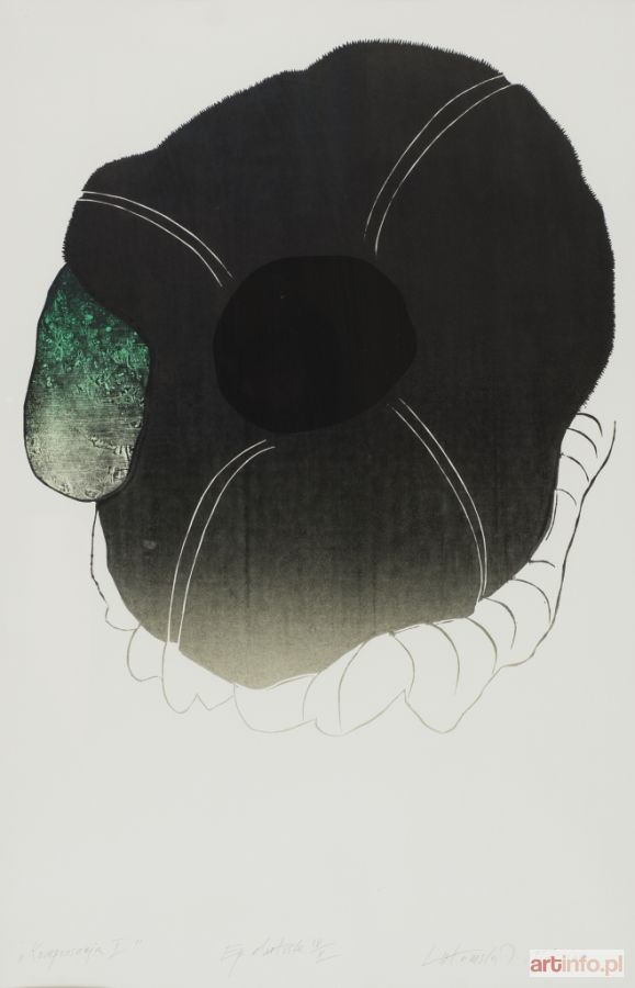 Linoryt barwny, papier, wym. w świetle passe-partout 88 x 56,5 cm, sygn. i dat. ołówkiem p.d.: Lutomski Z 1997 imp., opisany l.d.: "Kompensacja I", śr.d.: Ep.d'artiste IX/X/.