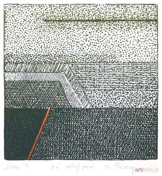 druk wypukły/papier, 8 x 8 cm sygn. i dat. p. d.: `Z. Purczyński 95`, tytuł. l. d.: `Line` 3` oraz napis śr. d.: `ć ź (?) relief print.`