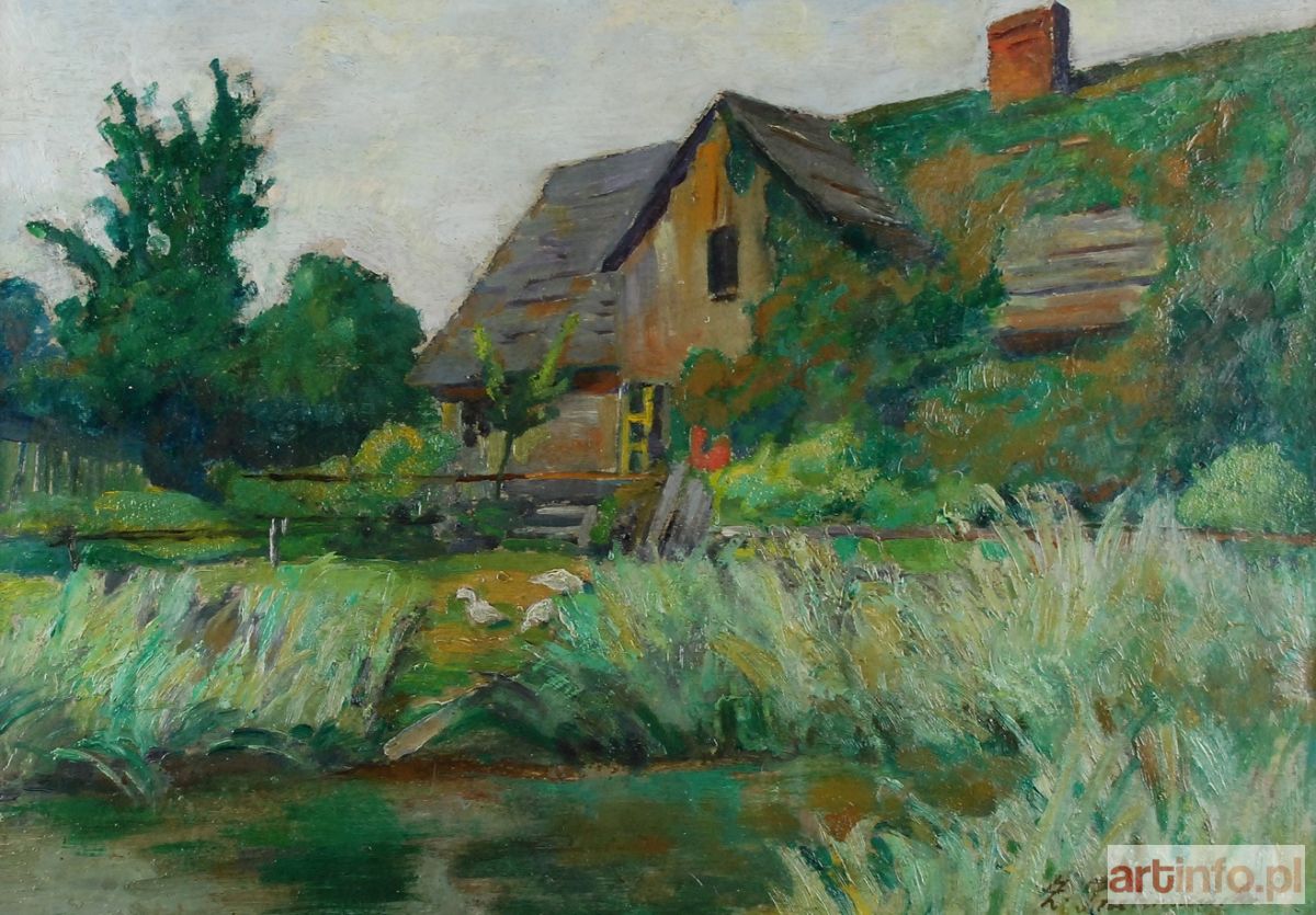 olej, tektura; 32,5 x 47 cm (w świetle oprawy); sygn. p. d.: Z. Przebindowski ; na odwrocie opis autorski: Z. Przebindowski / "Chatka kaszubska" Kościerzyna.