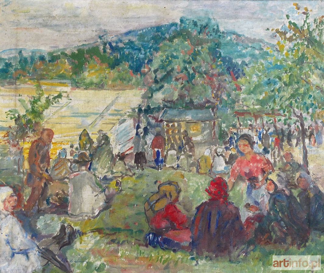 olej, płótno; 50 x 60 cm; sygn. l. d.: Z Przebindowski; na odwrocie dwie nalepki wystawowe: Towarzystwo Artystów Polskich Sztuka w Krakowie z tytułem: Odpoczynek pątników; oraz TPSP w Krakowie z tytułem Odpoczynek pątników, z datą 1937 i nr 299 /97.