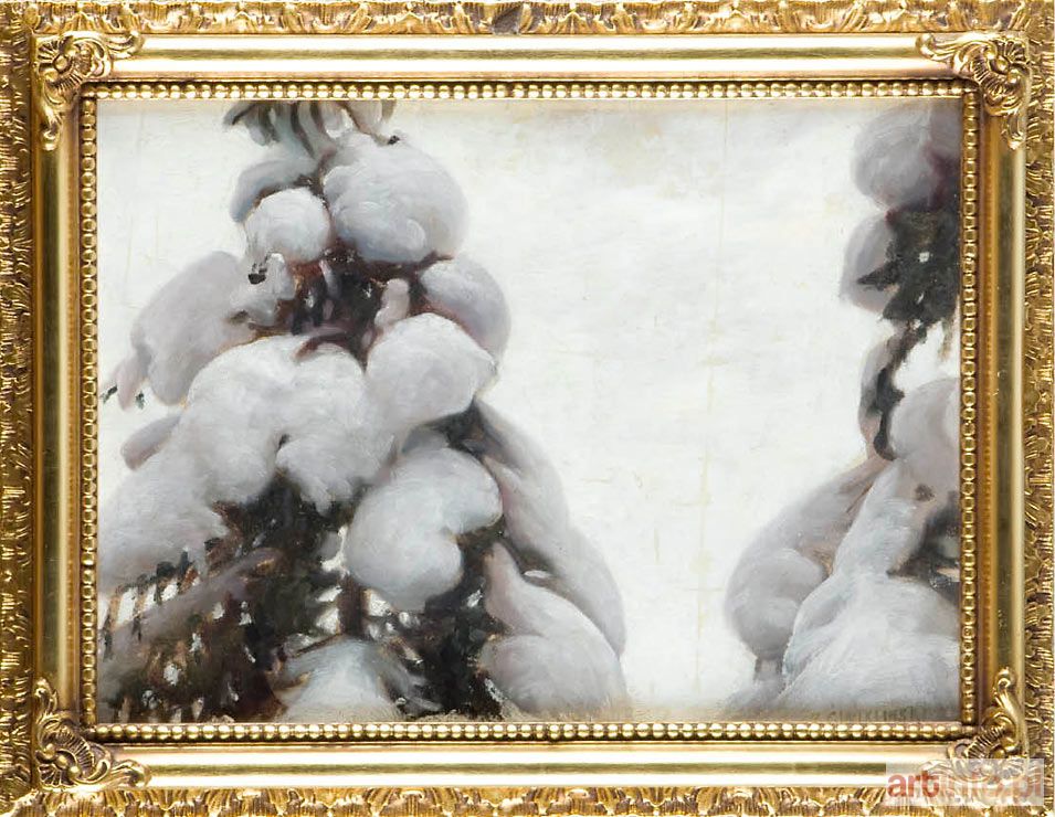 olej/tektura, 30 x 38 cm sygnowany p. d.: `Z. ĆWIKLIŃSKI` na odwrocie papierowa naklejka: `Nr 12. | Nazwisko Ćwikliński Zefir | Adres | Tytuł Szkic "Okiść" | Rodzaj Cena 70 Kor | Własność ( )`