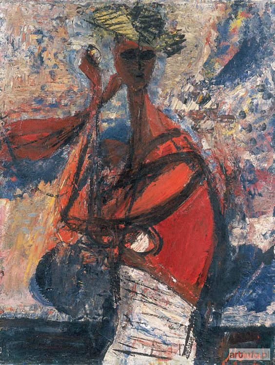 olej, płótno, 67 x 52 cm sygnowany p.d.: Menkes na odwr., na plecach z tektury, l.g. nalepka (częściowo oderwana) Associated American Artists, Nowy Jork, p.g. nalepka rękopiśmienna: ZYGMUNT MENKES | "THE BATHER" | OIL | 13. GRAMERCY PARK | N. YORK 3. N.Y, napis p.d.: IRENE STERN | COLLECTION | RIVERDALE | NEW YORK
