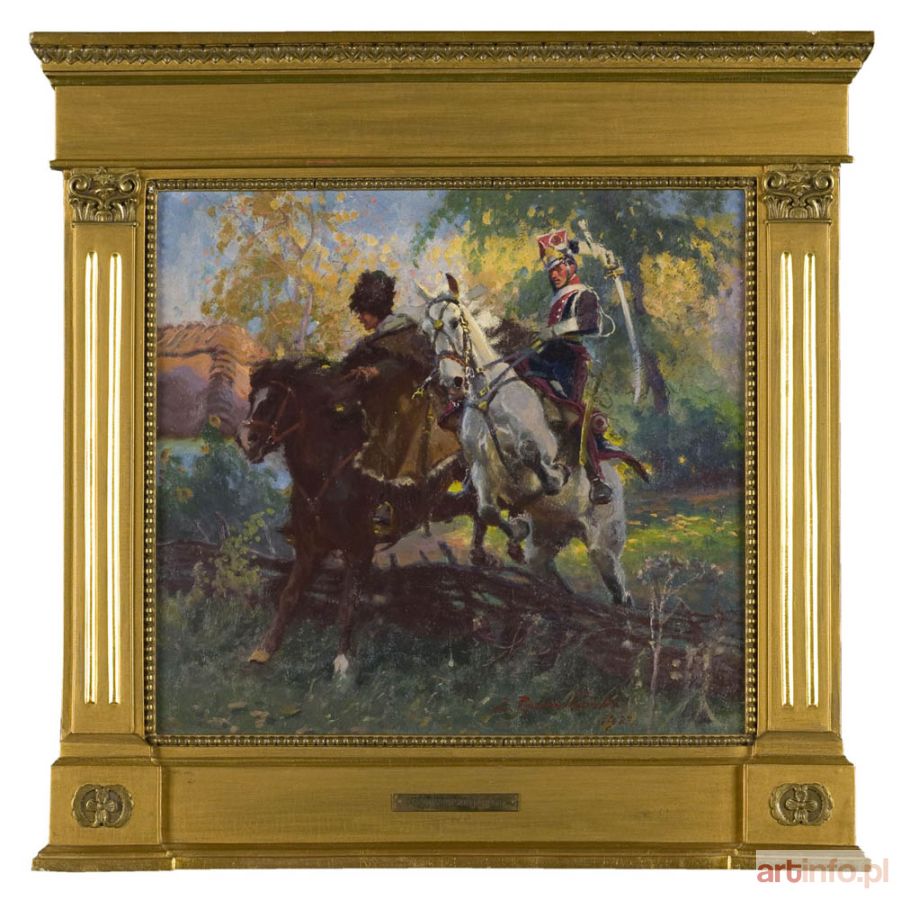 Zygmunt ROZWADOWSKI (1870-1950) Malarz, związany z lwowskim środowiskiem artystycznym, jeden z autorów panoram "Bitwy pod Piramidami" i "Racławickiej". Studiował u Matejki w krakowskiej SSP (1883 -1891) oraz w akademii monachijskiej. W latach 1910-1920 był profesorem Szkoły Przemysły Artystycznego we Lwowie. W swoim lwowskim mieszkaniu przy ul. Jabłonowskich prowadził w latach międzywojennych prywatne lekcje rysunku i malarstwa. Do jego ulubionej tematyki należała batalistyka, malował również sceny rodzajowe, pejzaże i portrety. Zmarł 23. 07. 1950 w Zakopanem.