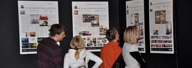 Wszystkie projekty, które znajdują się w galerii, przedstawiają wizje młodych ludzi. Nowe pokolenie architektów podchodzi do swojej pracy bezkompromisowo, dzięki temu, projekty te są bardzo różnorodne. Od prostych rozwiązań do skomplikowanych wizji. Wybór tych biur został dokonany z spośród architektów zarekomendowanych przez międzynarodowy zespół konsultantów. Wszystkie pomysły łączy przede wszystkim indywidualizm, próba połączenia rozwiązań urbanistycznych z estetycznymi. Wystawa w roku 2008 odwiedziła takie miasta jak Wrocław, Łódź, Poznań, Kraków, Cieszyn i Warszawa. Tournee będzie trwać nadal. Wystawa 44 Young International Architects pojawi się kolejno w Zielonej Górze, Katowicach, Białymstoku i Gdańsku.