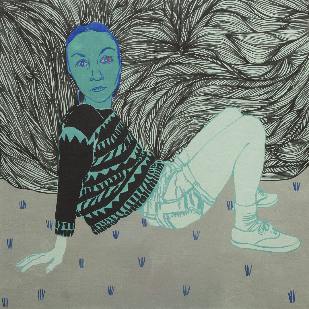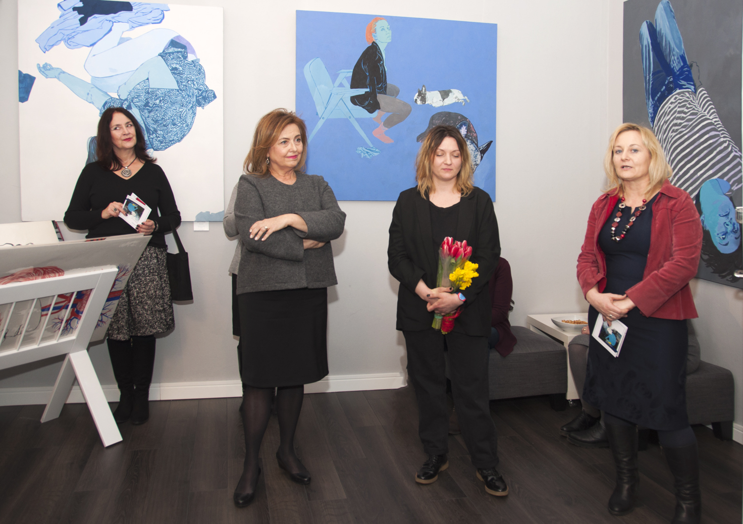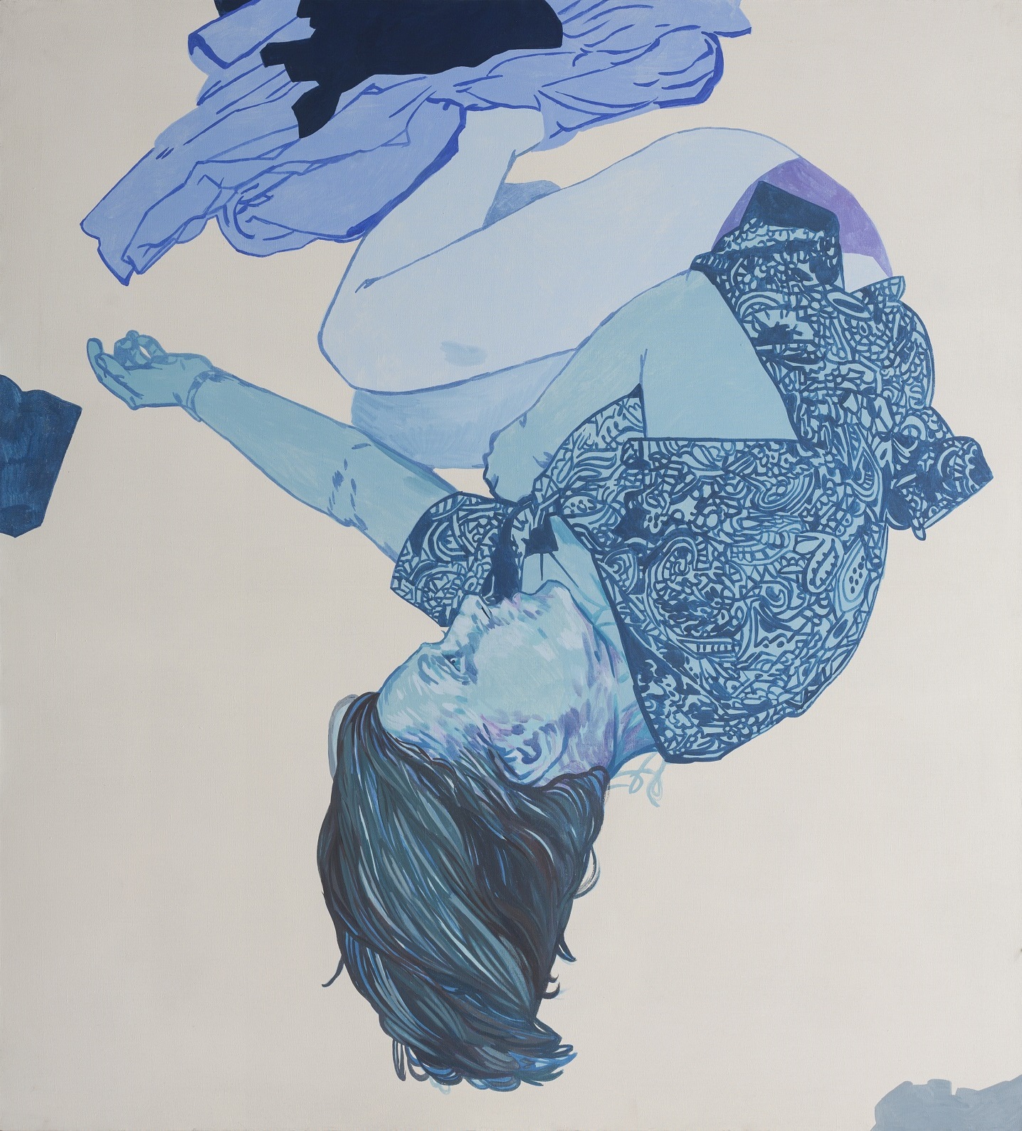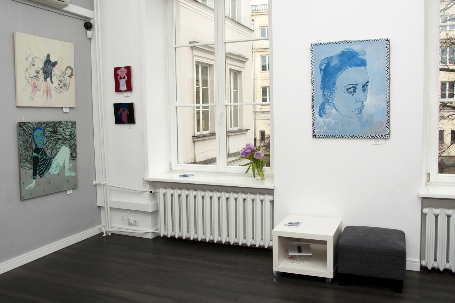 Figura autorki raz ujęta w skosach, serpentynowych skrętach (Bezsenność, 2014; Upadek, 2012), kiedy indziej jakby unosiła się w przestrzeni pozbawionej grawitacji (Autoportret z Michaliną, 2012), czy na chwilę znalazła się obok siebie. Bywa, że postać odcina się od otoczenia, zgiełku codzienności czy wręcz jak przerośnięte dziecko w żółtych trampkach, ukrywa w tajemniczym ogrodzie (Wszystkie oczy na mnie, 2014). Płótna utrzymane są przeważnie w błękitnej, chłodnej tonacji. Kolor służy dodatkowemu podkreśleniu stanu zamrożenia, zawieszenia, melancholii, czy „trwania w niebycie“.