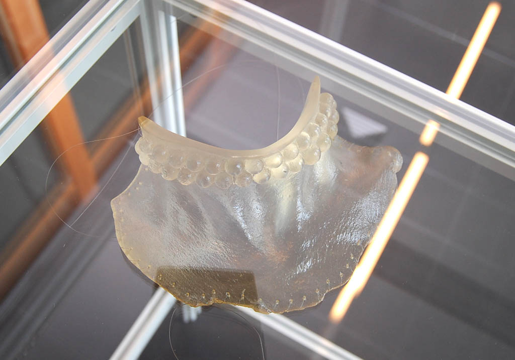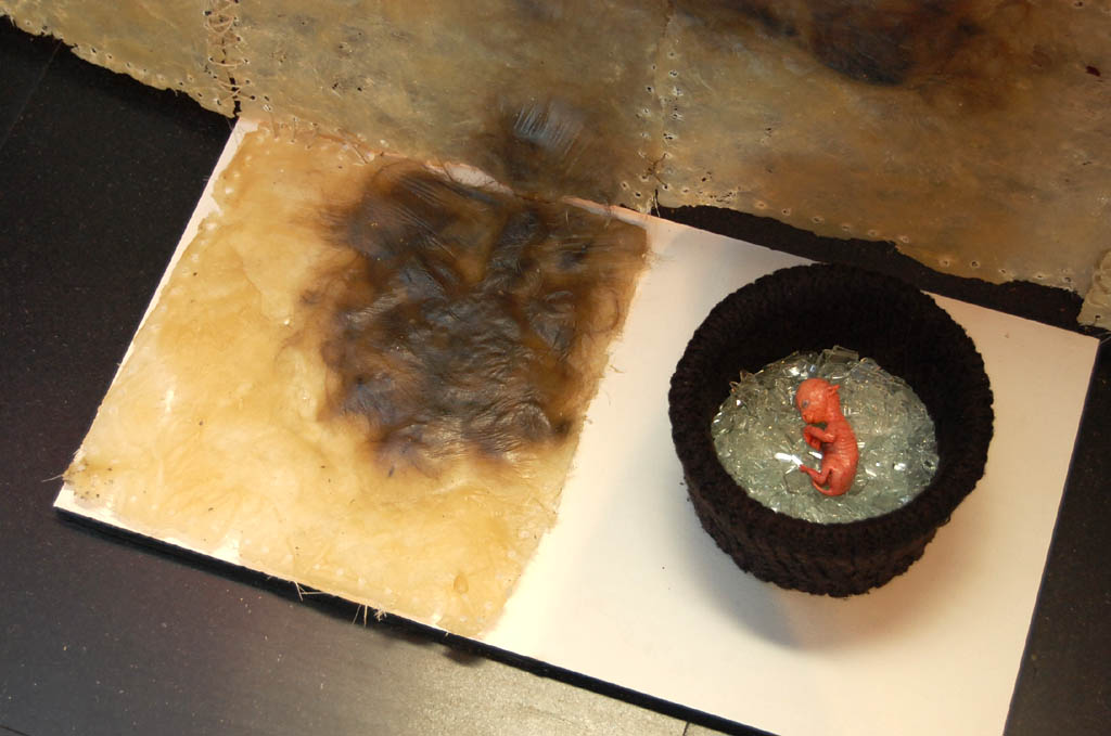 Z pracami Dagmary Horab koresponduje tworczość Adriany Lisowskiej. Na potrzeby jej prac poszerzono przestrzeń galerii o boczne, przeszklone studio, które z jednej strony stworzyło odrębną przestrzeń, o laboratoryjnych konotacjach, z drugiej poprzez szklaną płaszczyznę ścian pozostawiło prace artystki w aktywnej korespondencji z resztą wystawy. Lisowska tworzy biżuterię, choć niewiele kobiet zdecydowałoby się ją nosić. Prezentuje ją w postaci obiektów, a także na fotogramach, dzięki którym możemy zobaczyć ich relację z ciałem modelki. Podobnie jak Horab, a także trzeci uczestnik wystawy Artur Malewski, Lisowska pracuje z tworzywami sztucznymi. Realizowane przez nią obiekty to odlewy fragmentów ludzkiego, przede wszystkim kobiecego ciała. Naszyjniki, kolie i brosze to skóra ściągnięta z szyi i piersi modelek. Przeźroczysta, trochę błyszcząca, bardzo atrakcyjna wizualnie, odnosi się stereotypu postrzegania kobiety, jako osoby która przede wszystkim powinna epatować urodą. Z drugiej strony przypomina o naszej cielesnej marności, przemijaniu i śmierci. Pokazuje, że piękno ciała to tylko nasz chwilowy atrybut, który w wyniku upływu czasu czy na skutek choroby rozsypuje się w proch, i to zawsze za szybko, za wcześnie. Lisowska w swoich pracach, także poprzez tworzywo, nawiązuje tu do twórczości Aliny Szapocznikow, a filozoficznie bliższa jest może nawet różowym obiektom Marii Pinińskiej-Bereś. Jednak jej biżuteryjne ujęcie to bardzo indywidualny wkład w tę tematykę, określający indywidualność artystki.