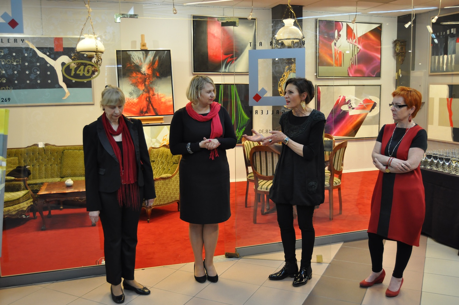 W poszczególnych obrazach Aliny Dorady-Krawczyk dostrzegamy podsumowanie kilku kierunków, które mogliśmy podziwiać w jej twórczości na przestrzeni dziesięciu ostatnich lat. Ale są tu też zapowiedzi nadchodzących nurtów tak sugestywne, iż widz z niecierpliwością oczekuje już następnej wystawy. W cyklach tanecznych Wandy Badowskiej-Twarowskiej przeżywamy stały rozwój kontemplacji tańca, jako najwyższej ze sztuk scenicznych. Obrazy jej są tak sugestywne, tak sensytywne, iż patrząc na taniec w nich uchwycony, zapominamy o muzyce i o dźwiękach, jakie podczas ruchu tancerza na scenie można usłyszeć. Może to będzie tajemniczy szmer stawianych stóp w pointach na deskach sceny, a może bicie serca…