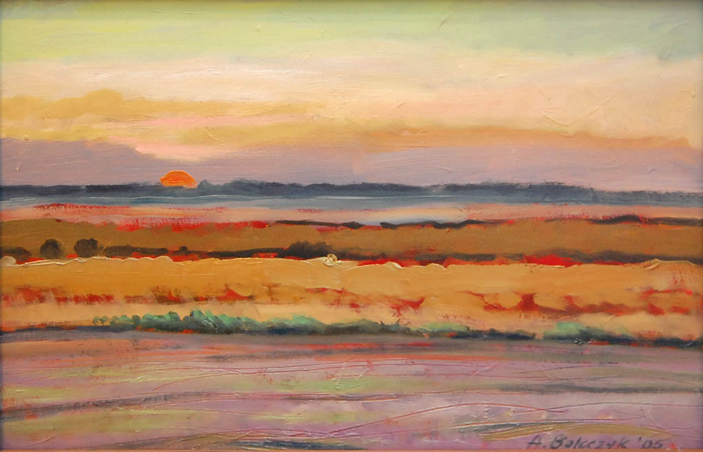 Malarstwo Alojzego Balcerzaka jest w duchu klasyczne i czerpie z doświadczeń polskiej szkoły pejzażu ze Stanisławskim i Chełmońskim na czele. Charakteryzuje je głębokie doświadczenie przyrody i przeżywanie rodzimego krajobrazu, jako wielkiego spektaklu natury, ale także jako naszego dorobku historycznego i patriotycznej spuścizny, jej elementami dworkowej kultury szlacheckiej i sielskim życiem w zaścianku. Szczególną wartością tych prac są ich walory kolorystyczne. Balcerzak jest kolorystą wytrawnym, ale z gruntu nowoczesnym. Mimo historycznej świadomości zawartej w jego pracach, ich gama barwna i rozkładane często dla kontrastu akcenty kolorystyczne nie wywodzą się z Monachim, choć i nie odżegnuje się od niego niechętnie. Raczej artysta w swoich pracach wyraża szacunek dla poprzedników, ale robi swoje - ze zdecydowaną pewnością buduje w sielskim krajobrazie kompozycje malarskie kolorem prosto z tuby, o nierelanych odcieniach industrialnych róży i fioletów, przemysłowych zieleni i toksycznych błękitów. Są to jednak tylko pojedyncze, drobne akcenty, które w oku patrzącego tworzą pełen wyrazu balans barwny, świadczący o doskonale odrobionej lekcji impresjonizmu, pełnej świadomości sztuki nowoczesnej i własnym sposobie na kształtowanie używanych środków wyrazu.