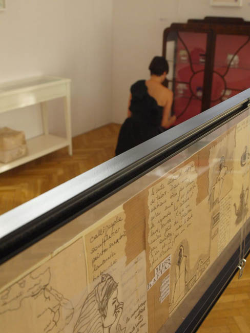 Wchodząc do sali wystawowej mamy wrażenie jakbyśmy wkraczali do osobistego świata Anne Plaisance. Zobaczymy tu serwantkę, gablotę, stolik, spotkamy nawet samą artystkę. W DAP-ie Plaisance pokazuje też Dzienniki – zapiski życia, które tworzy w czasie swoich podróży po świecie (m.in. Bali, Maroko, Kenii, Grecji, Nepalu). Tylko pozornie wyglądają one jak zwykły pamiętnik. „Ozdobiony wysokiej jakości papierem… czasem kolorową tasiemką… To pewnego rodzaju szkicownik, ale inny, oryginalny. Niebanalny notesik, który zawiera w sobie wiele zapisków.” – pisze w katalogu kurator wystawy Edyta Dzierż. I rzeczywiście, jeśli przyjrzymy się dokładniej, znajdziemy w nich szkice postaci i architektury, historyjki, collage, zdjęcia i zapisane myśli.