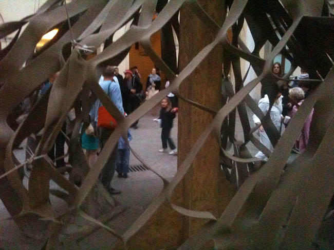 Wernisaż na dziedzińcu CSW rozpoczął live performance artysty i architekta Jakuba Szczęsnego, podczas którego grupa uczestników (dwanaście dwuosobowych zespołów) wzięła udział w budowie Rozciąganego pawilonu. Instalację tworzyło kilka związanych u góry i umocowanych u dołu płacht wykonanych z materiału concrete canvas. Powstałą w wyniku naciągania lin konstrukcję zalano następnie wodą w celu jej usztywnienia (pawilon-rzeźbę można oglądać w parku CSW).