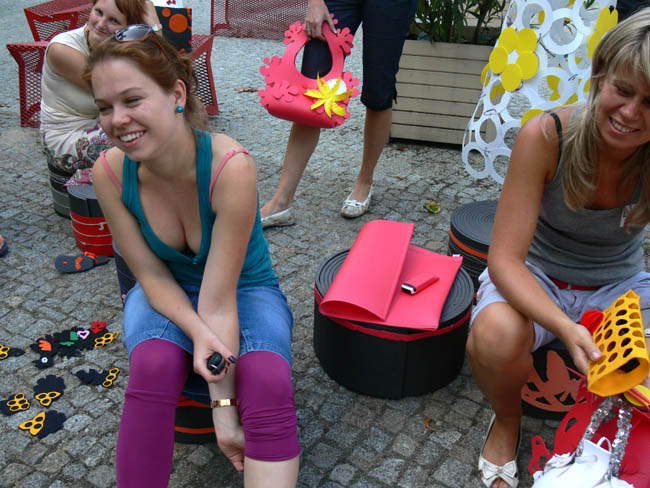 Tematem warsztatów było projektowanie przedmiotów funkcjonalnych z materiałów, które pochodzą z recyklingu. Uczestnicy warsztatów wykorzystali w swojej pracy twórczej filc, sznurek i pleksi. W ten sposób tworzyli dekoracje, kapelusze i torby. Hitem warsztatów okazały się pufy z pianki polietylenowej. Zajęcia przyciągnęły szczególnie osoby młode, początkujących projektantów, studentów, a także amatorów projektowania.