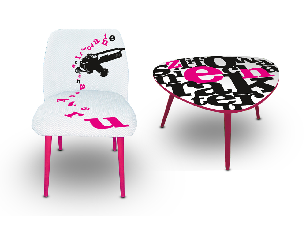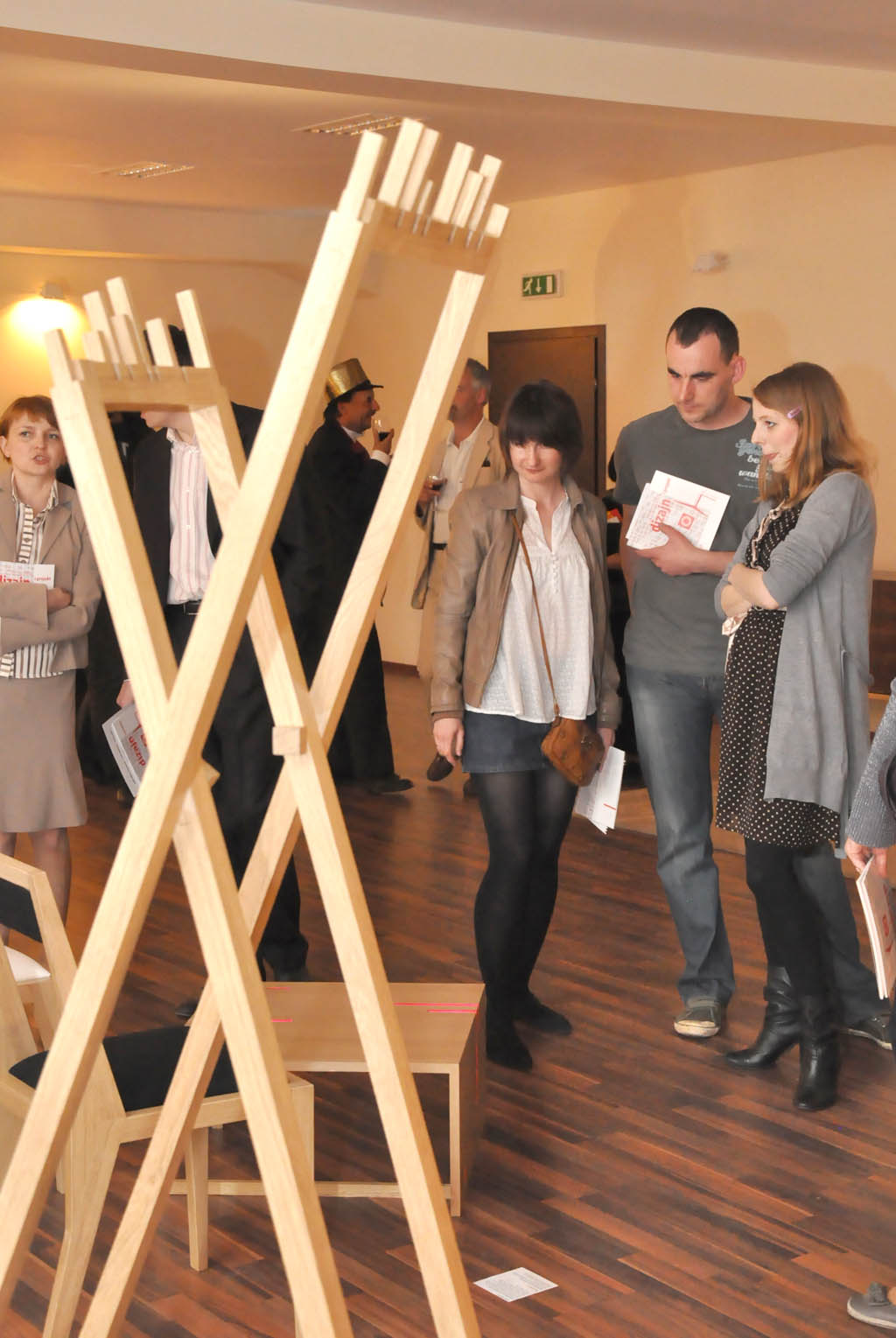 Biuro Kreacja zaprezentowała stół, krzesła i wieszak, wszystko z drewna, formy czyste, określone przez kształt. Natomiast siedziska grupy Malafor czy Lapolka, odwołują się do surrealnych wzorów. Lapolka zaprezentowała "gąbczastą" chmurkę do siedzenia, miękką i wygodną. Malafor stworzył wielką kość, zwaną kostką w abstrakcyjne pasy.Ich gazetniki także są pomysłowe i oryginalne w swojej budowie.