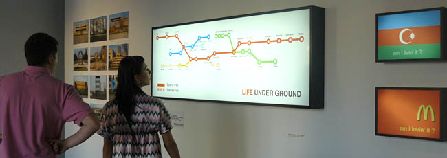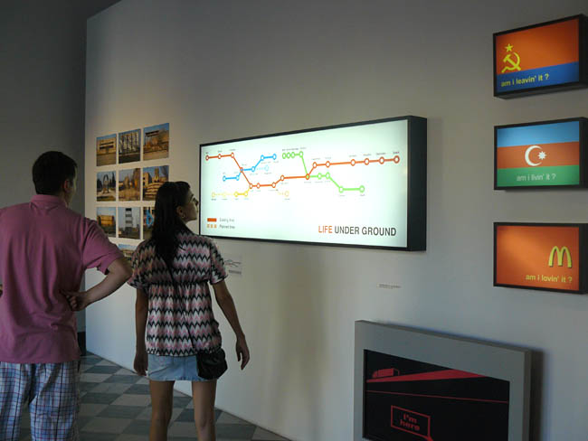 W ekspozycji wzięło udział siedmiu artystów: Waram Agasjan (Armenia), Czyngiz Babajew, Orkan Husejnow, Farid Mamedow i Tarlan Gorczu, Jejhun Ojadow (Azerbejdżan), Gio Sumbadze (Gruzja). W zaprezentowanych pracach koncentrują się na miejscu swojego zamieszkania, a więc miastach Kaukazu tytułowych Baku, Erywaniu, Tbilisi. Miasta te według twórców to miejsca, w których tradycja miesza się z współczesnością, ale także silny jest wątek przemian społeczno-ekonomicznych, które dotknęły te kraje. Widać to szczególnie na przykładzie zdjęć Gio Sumbadze Miasta satelickie, które przedstawiają zniszczone i zdewastowane budynki-straszydła, niegdyś dumę socjalistycznego państwa, pozostałości po wcześniejszym systemie. Takich „okazów” także w Polsce nie brakuje, ale coraz szybciej ustępują miejsca nowym biurowcom lub blokom. Podobna tematyka pojawia się w fotografiach Warama Agasjana, o znamiennym tytule Ruiny naszych czasów. Z kolei w nieco poetyckich fotografiach Farid Mamedow i Tarlan Gorczu poprzez fotomontaż tego co związane z tradycją i religią z tym co współczesne, ukazują swoją wersję tytułowego Miasta marzeń. Na motywie architektonicznym narożnika skupia się Gio Sumbadze w wideo Narożnik. Pytanie o miejsce zamieszkania jest także pytaniem o tożsamość, co szczególnie pokazuje praca Czyngiz Babajewa Am I leavin it? Am I livin it? Am I lovin it?, gdzie w podświetlanych lightboxach znalazły się flagi Związku Radzieckiego, Azerbejdżanu oraz logo McDonalda.