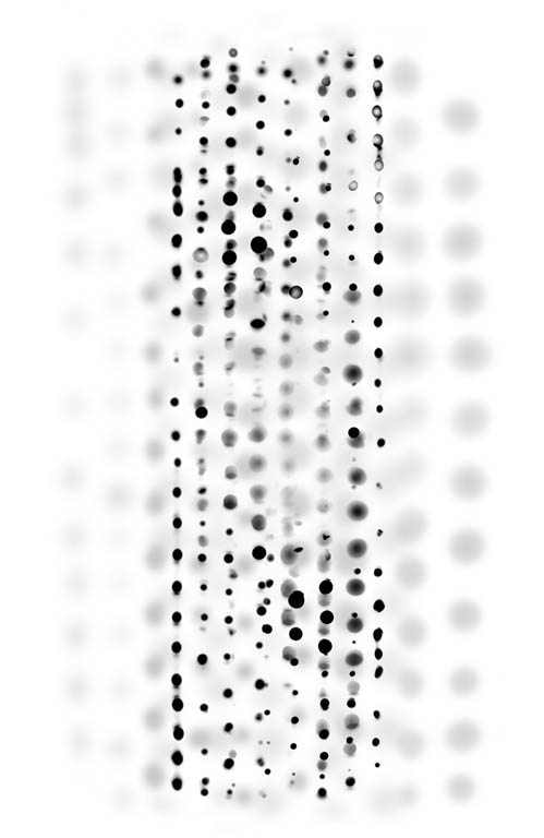 Ideogramy w dużym formacie (200 x 130 cm) rzucone na płótno w technologii cyfrowej są odbierane jako byty zawieszone na krawędzi swojej tożsamości pomiędzy tym, czy może były w naturalnej przestrzeni, a tym, czym teraz są jako sztuka. Balans przestrzenny sprawia nową strukturę istnienia. Artystyczna imaginacja narusza substancjalność przeniesionych do dzieła obiektów i odsłania jakieś "więcej". One są uszykowane do ulatywania dalej i dalej w abstrakcję, uruchamiają intelekt. Umysł musi zapytać o te plamy wibrujące, o fenomen obecności, o kompozycję, w której wiążą się ze sobą elementy z pozoru niezależne. Zniuansowane nasyceniem koloru znaki pokazują równocześnie oddalanie oczywistości i możność budowania całości, która znów będzie istnieć dla siebie, pozostając dla rozumu obła, niedostępna analizie. Tracąc wyrazistość konturu plastycznie chwytane sygnały bytowe wyzbywają się narracji, to znaczy, że nie pozwalają przypisać im tożsamościowych jakości. SĄ. Bez parametrów i bez ikonografii. Lekkie, wolne, osobne. Nie mają nazw, więc nie należą do żadnego wykształconego przez dotychczasową kulturę porządku ludzkiego świata. Plan widzenia znajduje się we wnętrzu widzialnego obrazu, ujawnia jakiś niezidentyfikowany stan w procesie przemiany, tranzytu, grawitacji. Te widoki nie mają znanej ontologicznej legitymacji, raczej projektują niepewną przyszłość. O wszystko trzeba razem z autorką pytać od początku, nie oczekując odpowiedzi. Wypromieniowana z obiektów/znaków przestrzeń uwodzi ambiwalencją, generuje jeszcze niepojęte wymiary. Być może najbardziej przydatny jest tu termin "spacing" Jacquesa Derridy. Oznacza on siłę otwierania na inne jakości. Przestrzeń w tym rozumieniu nie jest interwałem między dwiema rzeczami lecz ruchem, stawaniem się różnym od niej samej. Żadnej pewności do końca. Rzecz znajduje się na granicy swojego istnienia i sugestii. Coś się dopiero ukaże albo nie objawi się wcale?